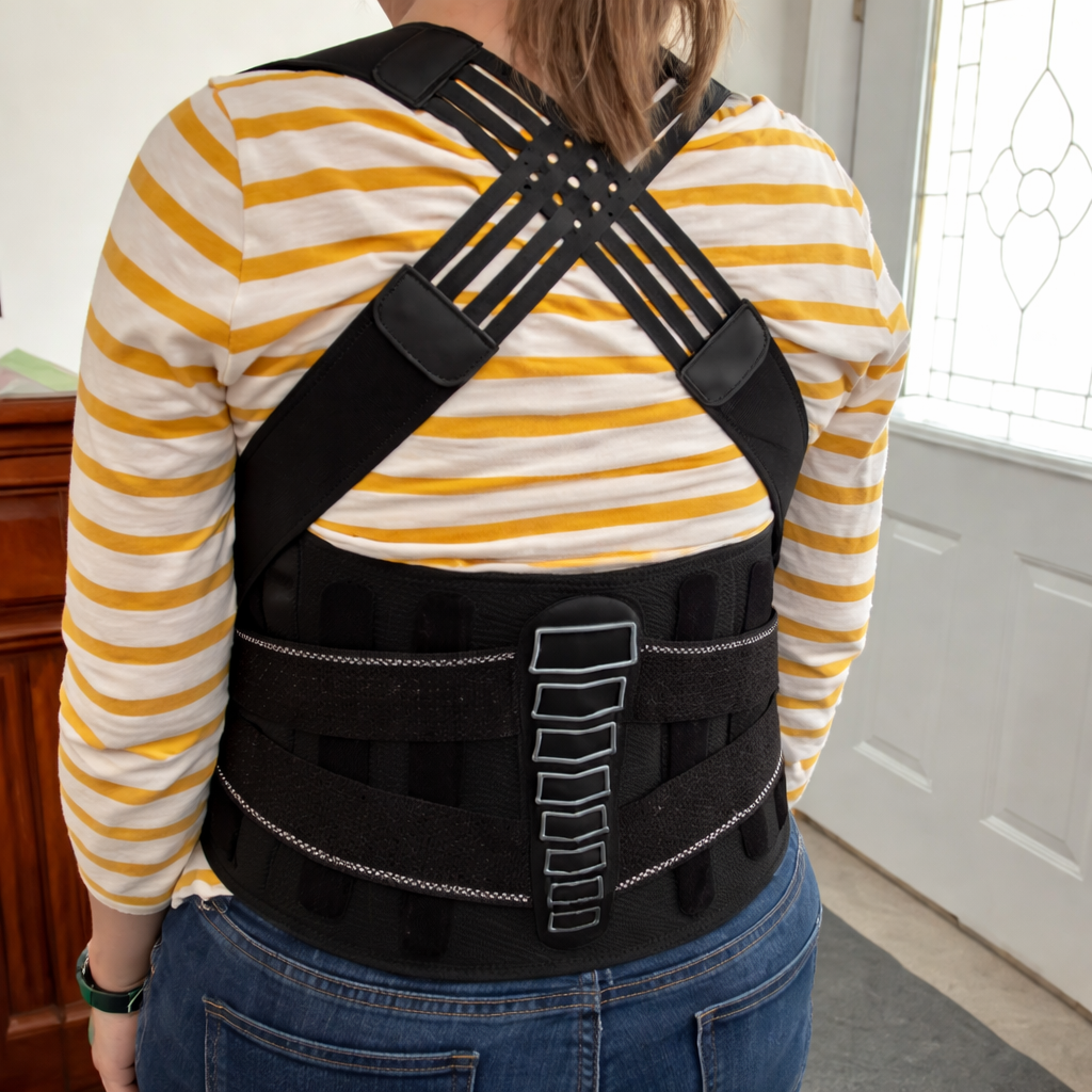 La Faja Correctora Postural Premium™ está diseñada para alinear la espalda, corregir la postura y favorecer la recuperación de la clavícula gracias a su sistema de tracción suave y constante.